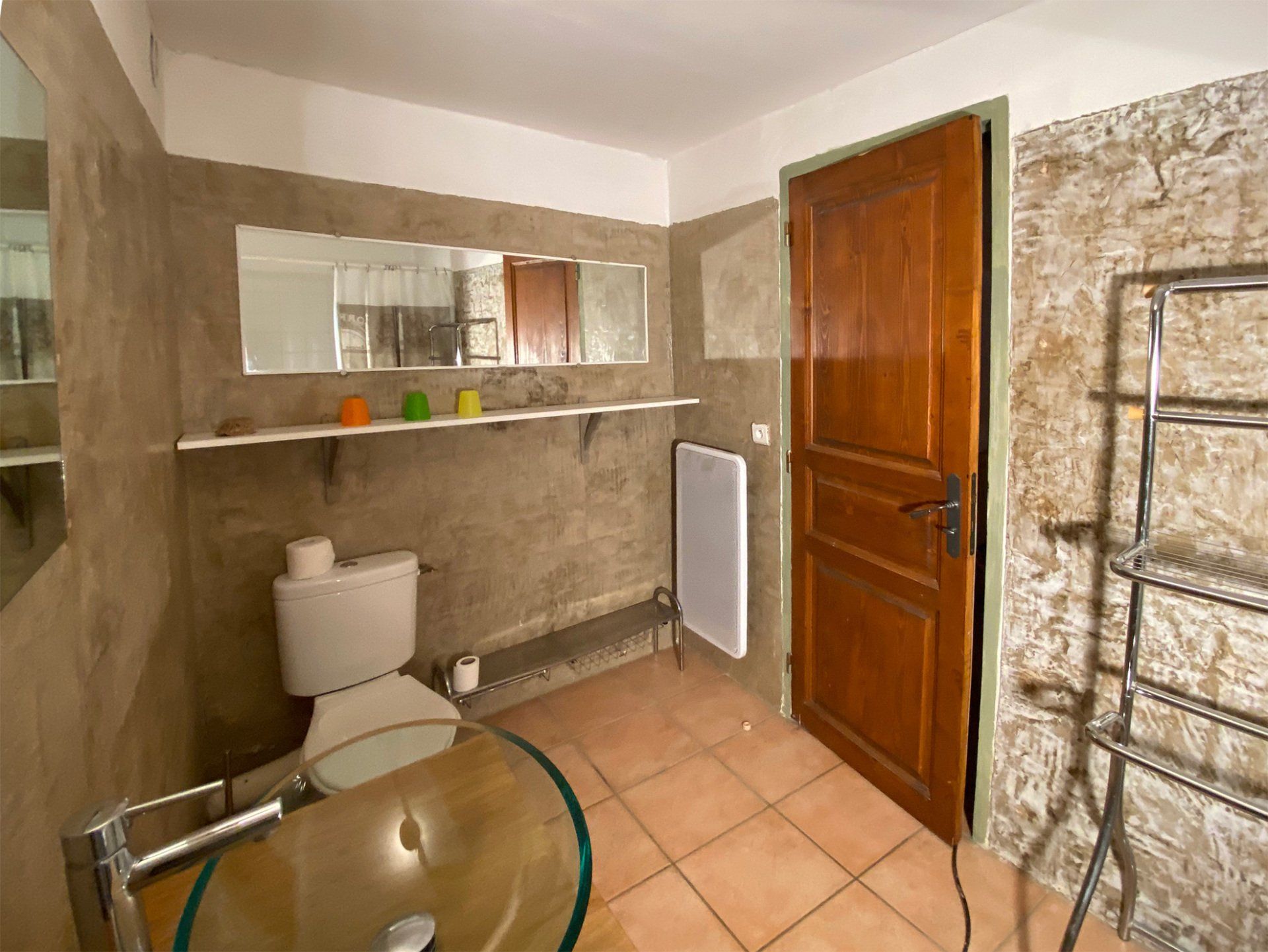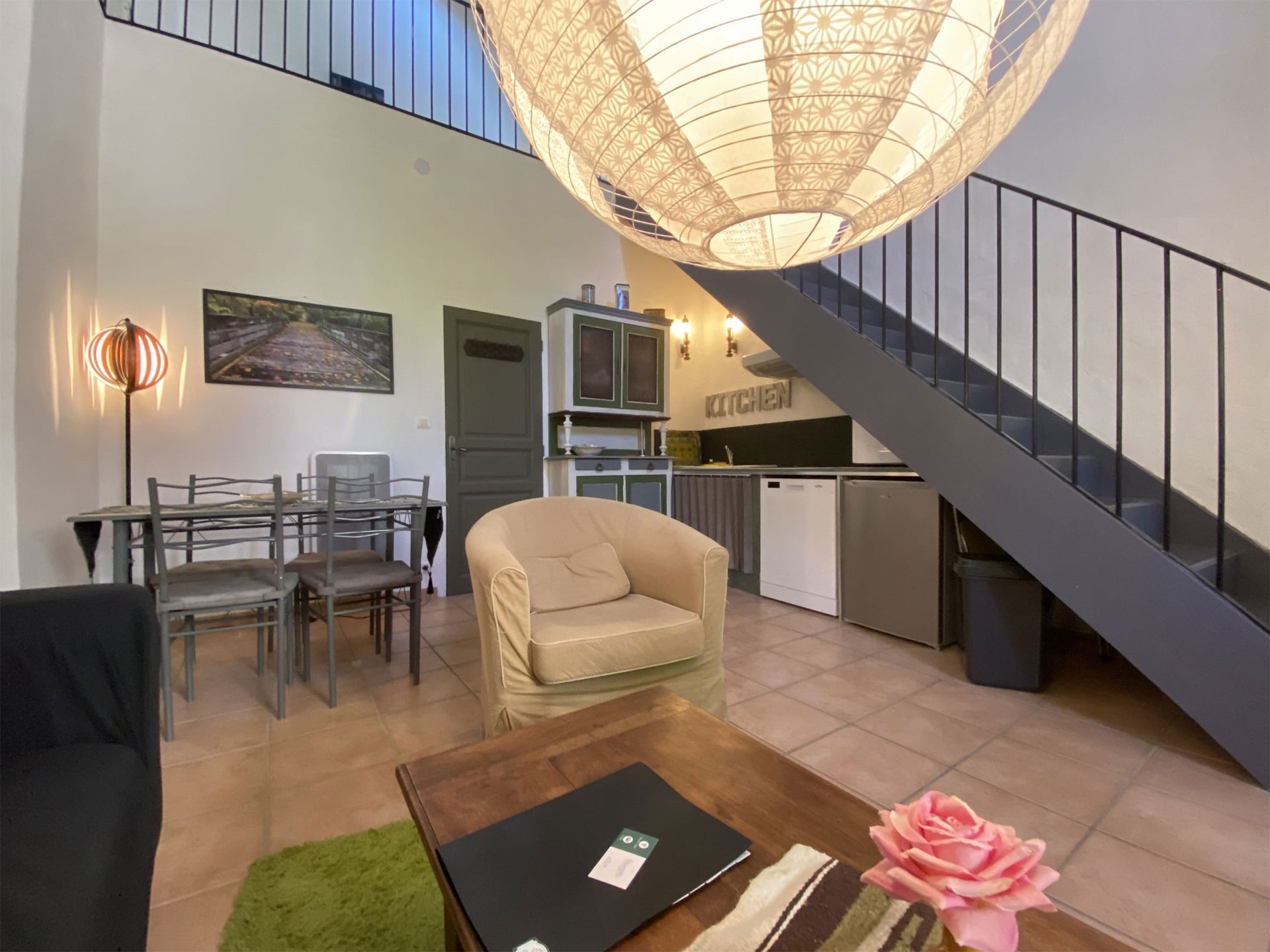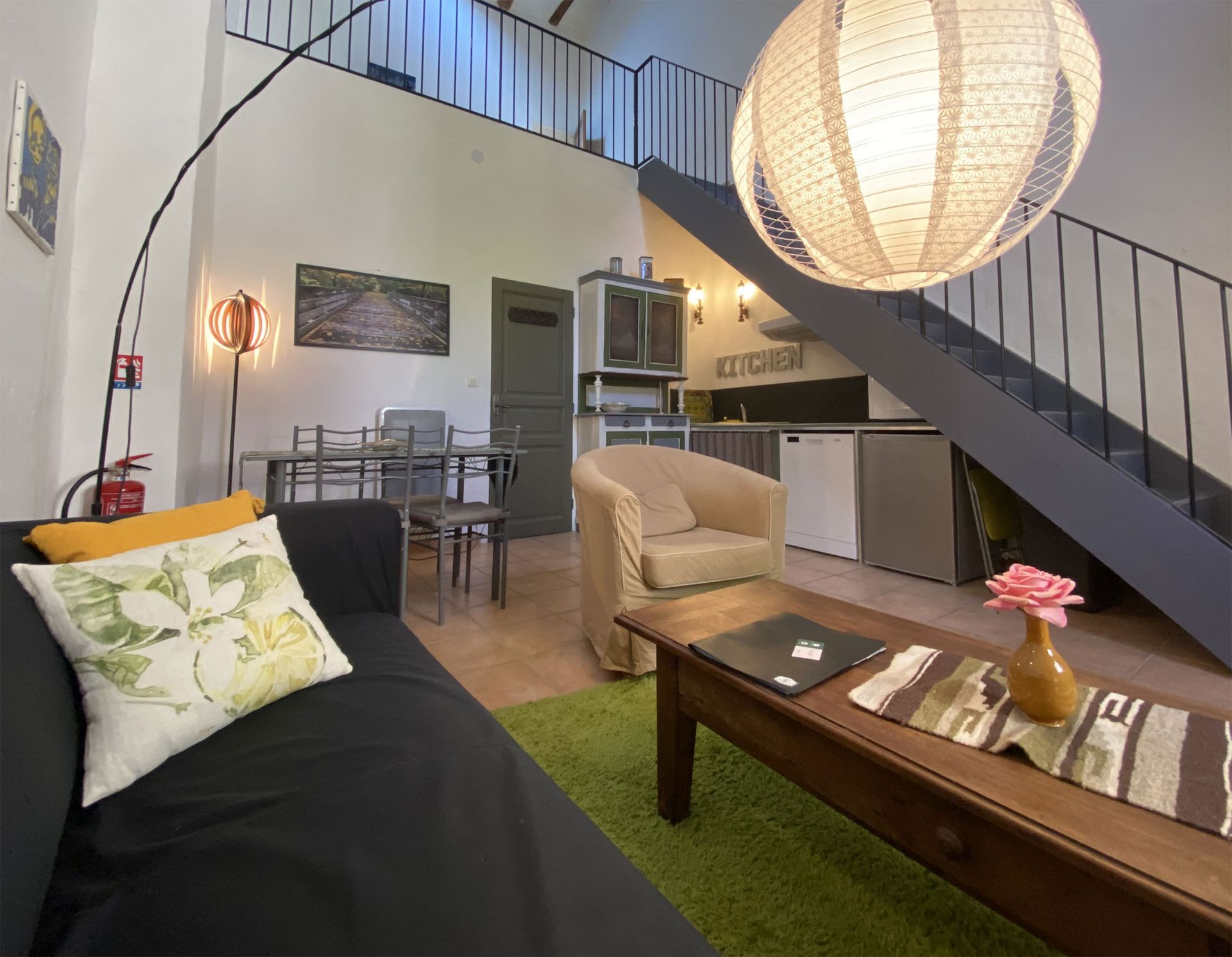Met een eigen toegang vanaf het terras van het pand, via een trap met een klein balkon, kom je op het eerste niveau van het appartement. Hier bevinden zich de