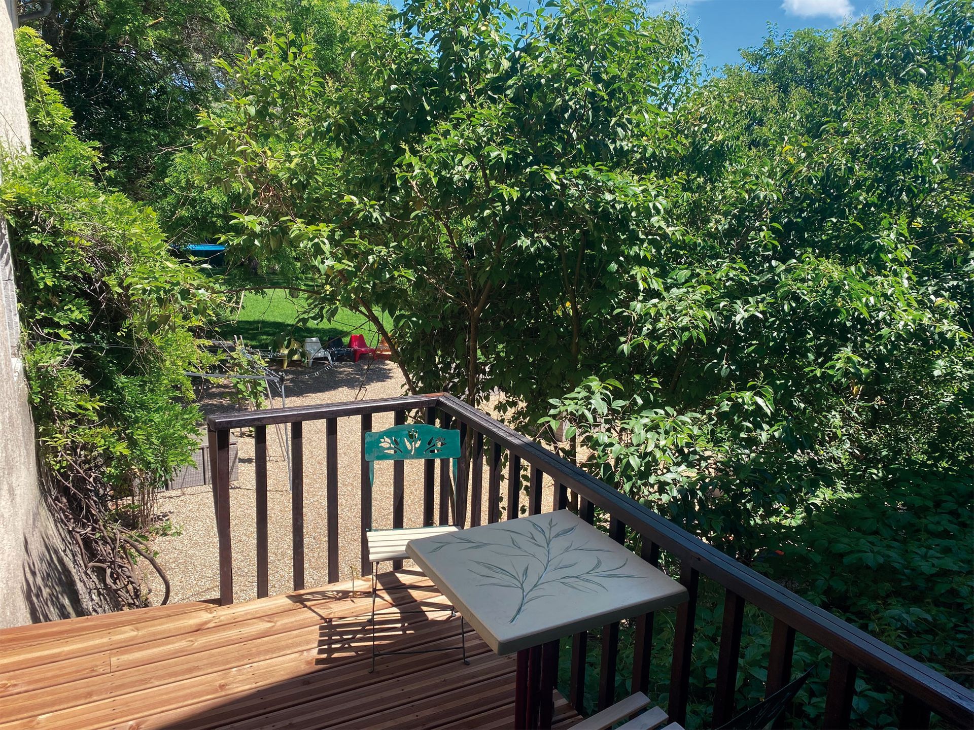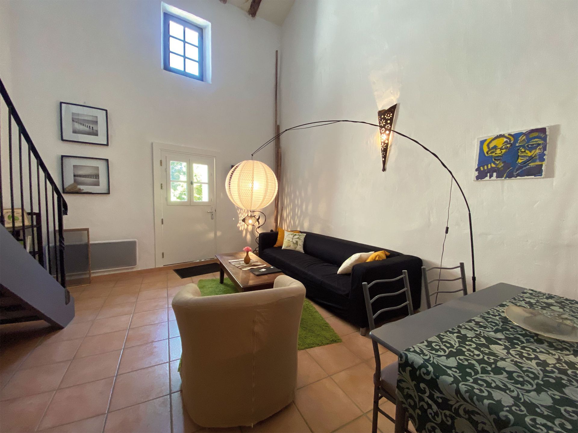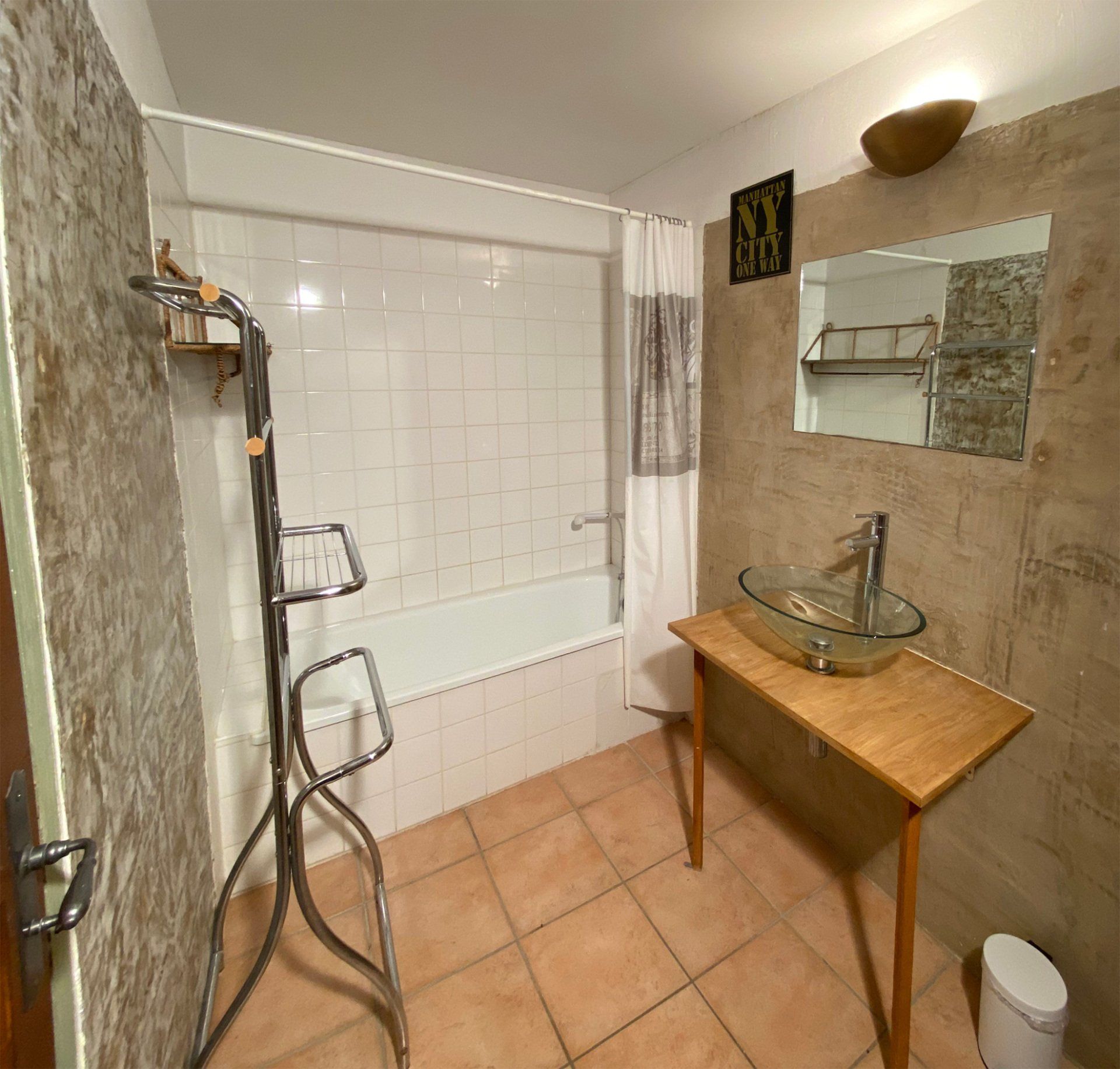 Met een eigen toegang vanaf het terras van het pand, via een trap met een klein balkon, kom je op het eerste niveau van het appartement. Hier bevinden zich de